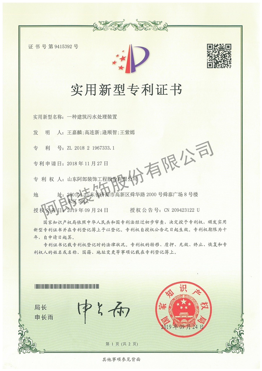 阿郎发展污水处理装置专利