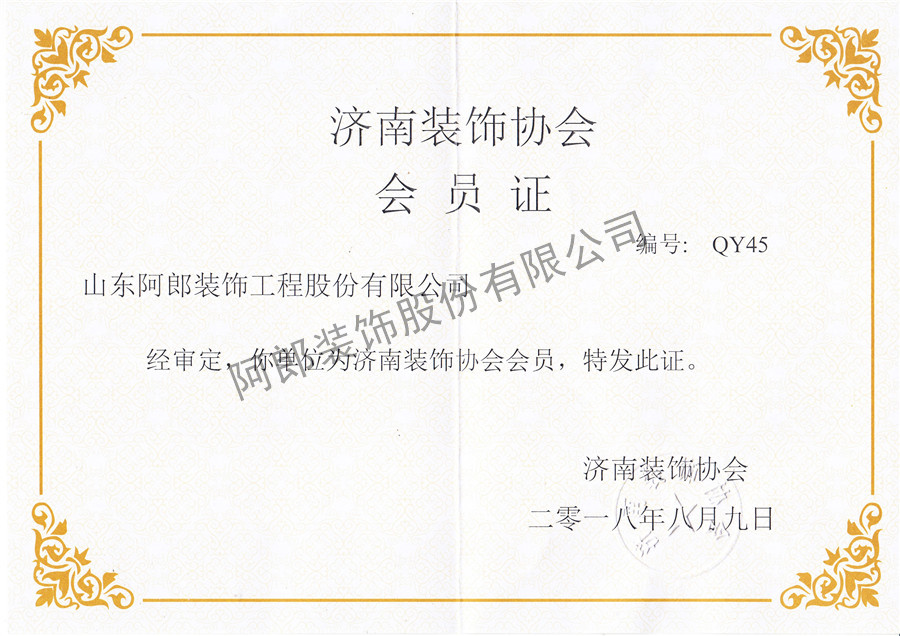 济南装修协会会员证书